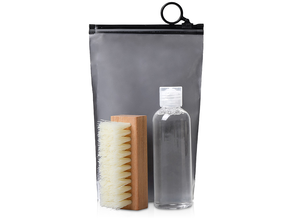 Чистая обувь — за пару минут. Этот компактный набор с очищающей жидкостью и щёткой упакован в удобный пакет с зип-локом, чтобы вы могли ухаживать за обувью где угодно. Идеально для путешествий, офиса и повседневной жизни. Гравировка (CO2 лазер) (Без чернения) на данный товар осуществляется бесплатно. Оплачивается только настройка оборудования в размере 2700 рублей на весь тираж.