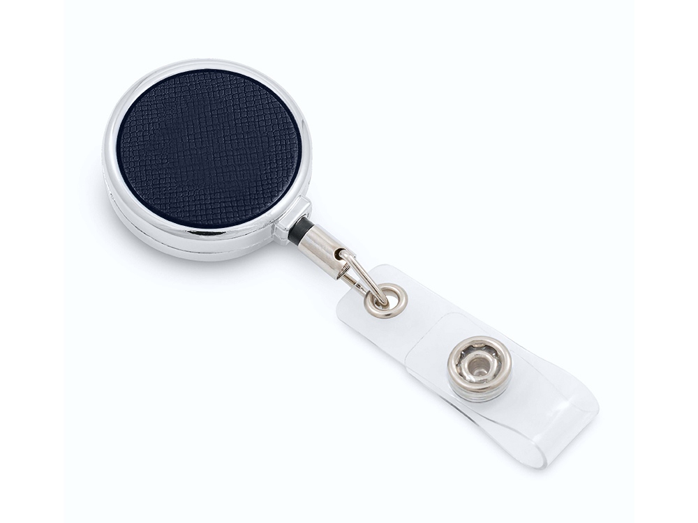 Металлический ретрактор с вставкой из экокожи станет частью запоминающегося и полезного бизнес-подарка, особенно в сочетании с карманом для бейджей из такого же материала.