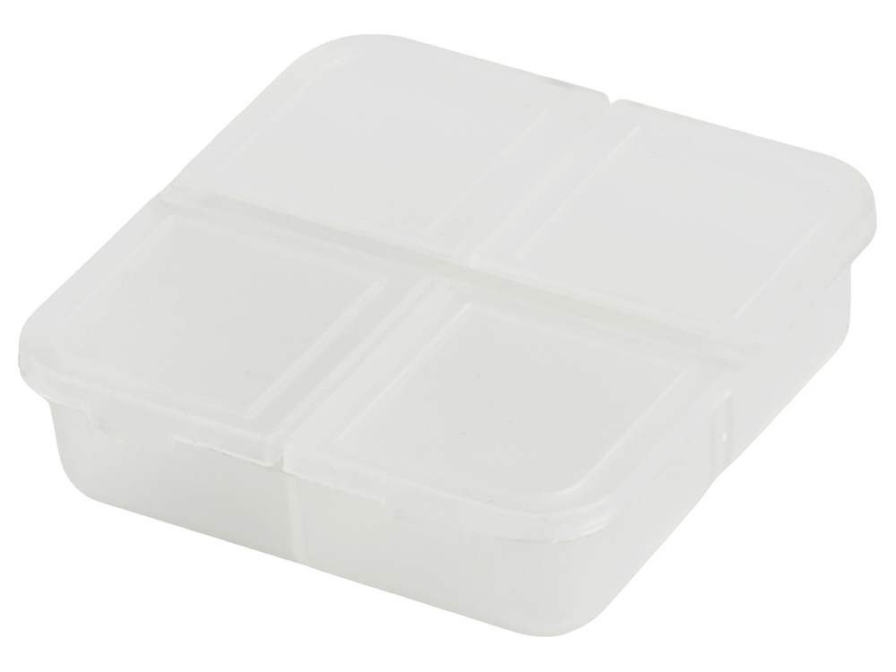 Футляр имеет 4 отделения для 4 приемов в день или удобного хранения нескольких видов лекарств.