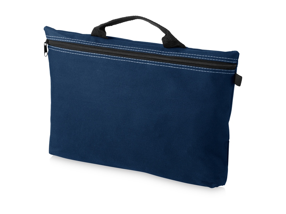 Сумка для конференций Orlando. Сумка для конференций с ручкой, застежкой на молнии и держателями для ручек снаружи и внутри сумки. Подходит для документов формата А4. Полиэстер 600D. Трафаретная печать (1 цвет (цветные изделия)) на данный товар осуществляется бесплатно. Оплачивается только настройка оборудования в размере 9100 рублей на весь тираж.