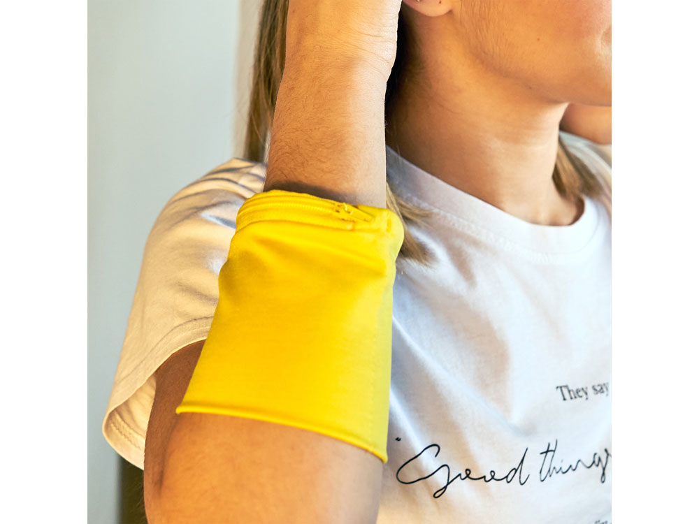 Эластичный браслет с карманом на молнии в тон.