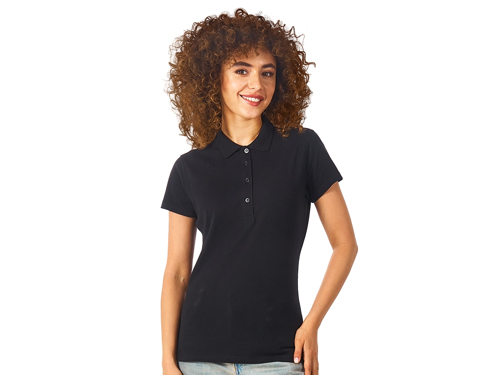 Женская рубашка-поло First. Воротник 1х1. Обшивка внутри воротника. Мужская и детская модели с 2 пуговицами, женская - с 4 пуговицами. Пуговицы с гравировкой в тон. Пике, 100% хлопок. 160 г/м2. Трафаретная печать (1 цвет (цветные изделия)) на данный товар осуществляется бесплатно. Оплачивается только настройка оборудования в размере 9100 рублей на весь тираж.