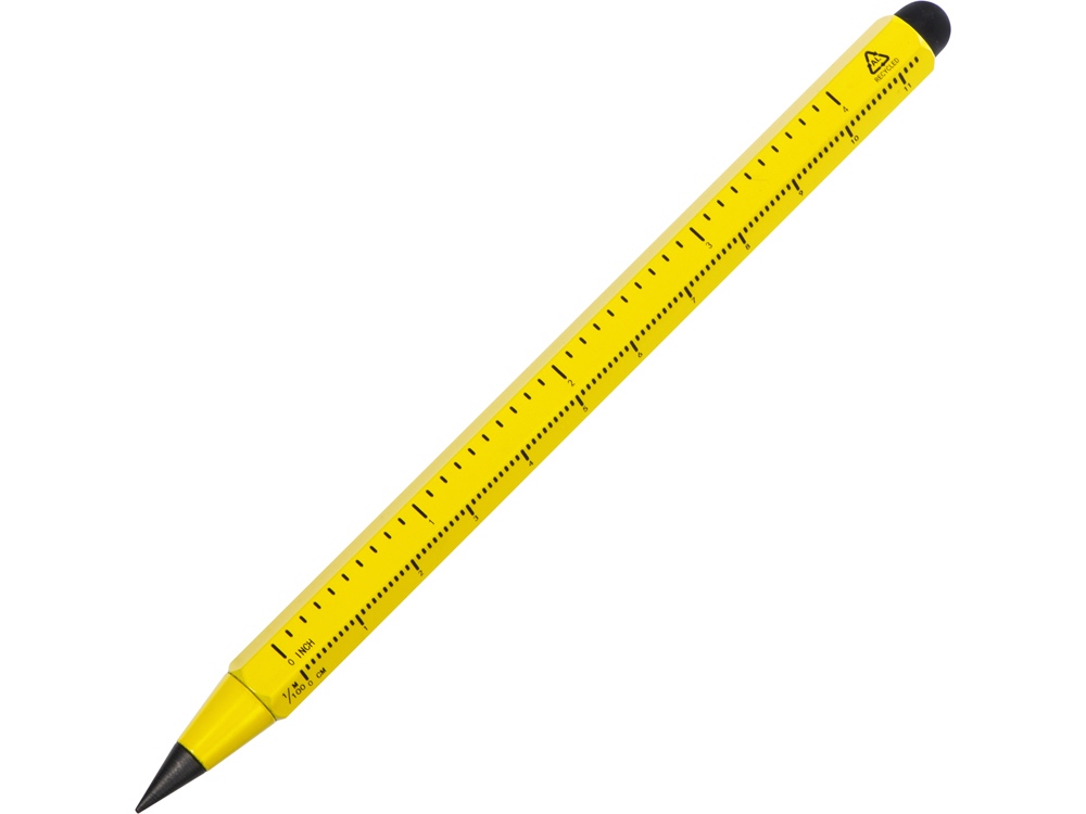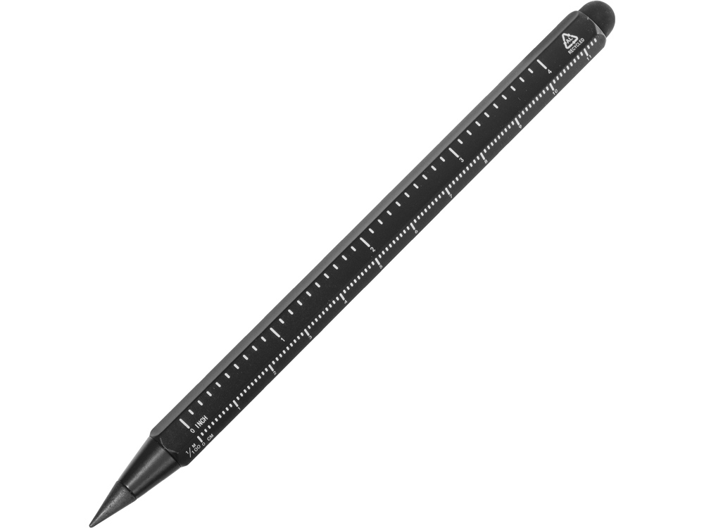 Карандаш изготовлен из переработанного алюминия. В отличие от обычных карандашей его не нужно точить, и он не пачкает руки.