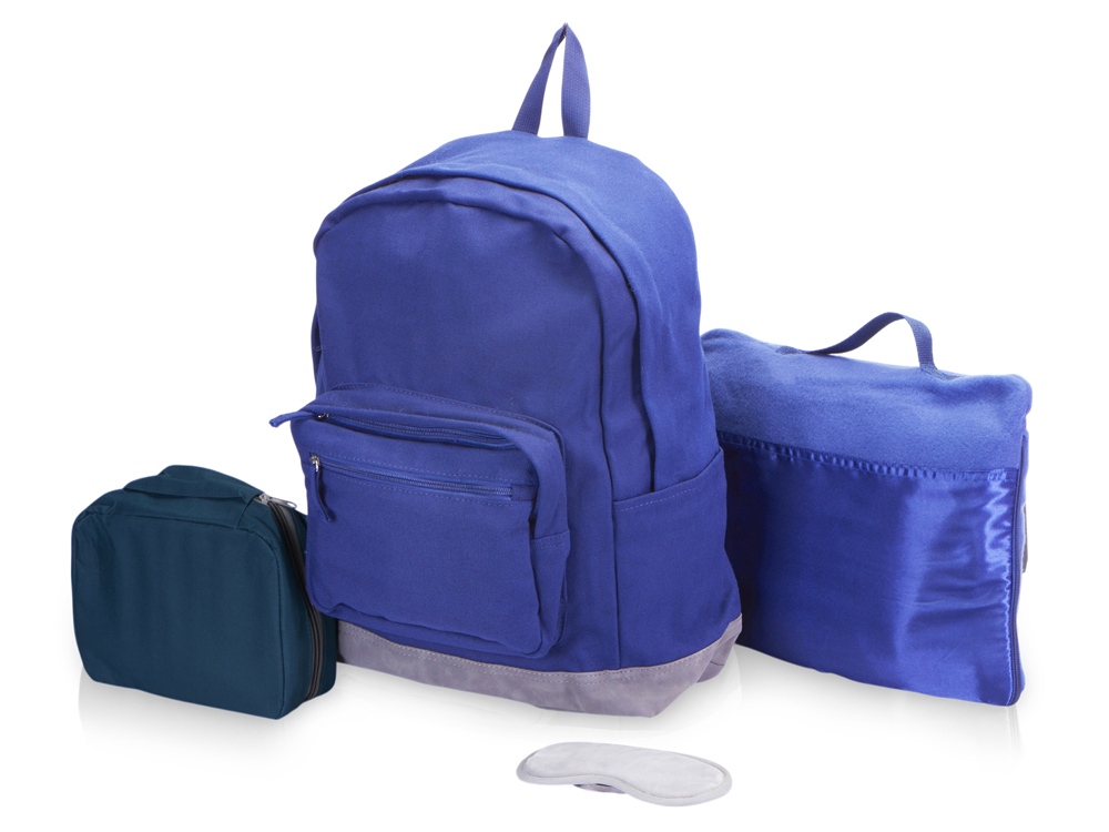 Отличное предложение для тех, кто собрался в путешествие! Рюкзак вмещает до 8 кг и прекрасно подойдет для ручной клади. Пледом можно укрыться в полете или использовать как подушку в пути или в случае длительного ожидания рейса. А чтобы сон был комфортным, воспользуйтесь маской на глаза, которую можно хранить вместе другими необходимыми для путешествия мелочами в удобном несессере. Такой набор обеспечит вам комфорт в пути и удобство в поездке на любом виде транспорта! Термотрансфер (1 цвет (цветные изделия)) на данный товар осуществляется бесплатно. Оплачивается только настройка оборудования в размере 10000 рублей на весь тираж.