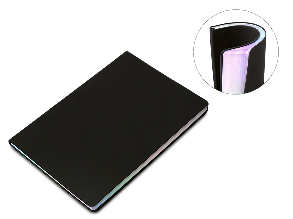Fellini - это не просто блокнот, а стильный аксессуар. Голографический срез создаст вау-эффект от вашего мерча, который дополнят обложка из приятной на ощупь и не маркой искусственной кожи с покрытие soft-touch и очень гладкая белая бумага плотностью 80 г/м2 с FSC сертификатом его дополнят. В блокноте также есть ляссе в тон обложки, чтобы легко ориентироваться в записях. Тиснение (Блинт) на данный товар осуществляется бесплатно. Оплачивается только настройка оборудования в размере 8700 рублей на весь тираж.