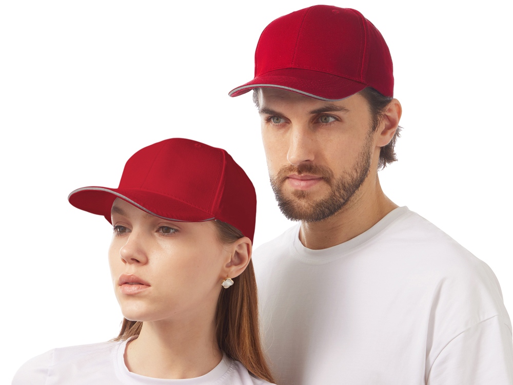 Шестиклинная бейсболка со светоотражающим кантом по козырьку и заднему хлястику - отличный вариант для занятий спортом в вечернее время. Объем регулируется металлической застежкой.