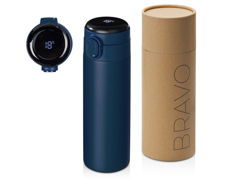 Вакуумная термокружка с медной изоляцией между стенками, которая точно не даст вам обжечься: сенсорный индикатор температуры сообщает о температуре напитка, выводя на дисплей информацию в градусах Цельсия. Что немаловажно, сенсор работает от сменной батарейки, что существенно продлит срок службы Bravo, позволяя не расставаться с полюбившейся термокружкой.