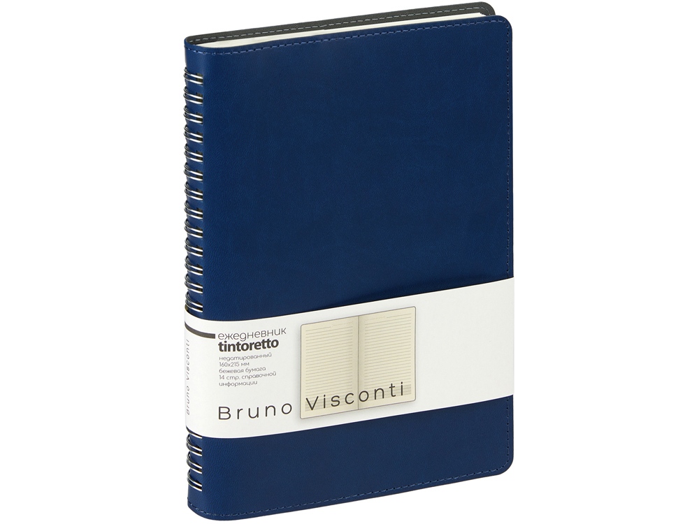 Недатированный ежедневник формата А5 Tintoretto ТМ Bruno Visconti - практичное решение для тех, кто любит ежедневники на пружине. Полускрытый гребень позволяет держать ежедневник открытым на столе и комфортно вести записи. 272 страницы блока произведены из превосходной бежевой бумаги плотностью 70 г/кв.м, а неброская линовка каждой страницы позволяет не отвлекаться на лишние детали. Гибкую обложку из искусственной кожи украшает отстрочка декоративной нитью по краю. Тиснение (Блинт) на данный товар осуществляется бесплатно. Оплачивается только настройка оборудования в размере 8700 рублей на весь тираж.