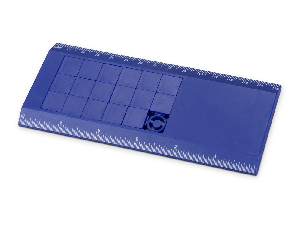 Кто сказал, что логику и мелкую моторику можно развивать только детям? Пару-тройку минут свободного времени в офисе можно посвятить знакомой всем с детства забаве – игре в пятнашки. Игра расположена на линейке, так что это еще и нужная канцелярская принадлежность. Цвета в ассортименте. Тампопечать (1 цвет (цветные изделия)) на данный товар осуществляется бесплатно. Оплачивается только настройка оборудования в размере 4500 рублей на весь тираж.