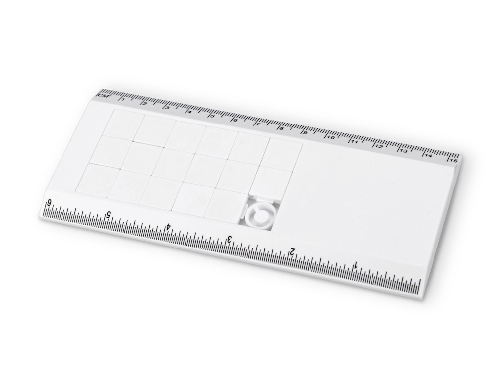 Кто сказал, что логику и мелкую моторику можно развивать только детям? Пару-тройку минут свободного времени в офисе можно посвятить знакомой всем с детства забаве – игре в пятнашки. Игра расположена на линейке, так что это еще и нужная канцелярская принадлежность. Цвета в ассортименте. Тампопечать (1 цвет (белые изделия)) на данный товар осуществляется бесплатно. Оплачивается только настройка оборудования в размере 4500 рублей на весь тираж.