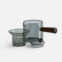 Проводник в мир спокойствия — чайник-ковш Hazy. Его мягкие линии, приглушенные цвета, стильная комбинация стекла и дерева создают атмосферу туманного утра, когда хочется укутаться в плед и насладиться чашкой горячего чая. Стеклянное сито с узкими прорезями поможет заварить чистый чай без чаинок, а эргономичная ручка — с удобством использовать чайник, не боясь обжечься.