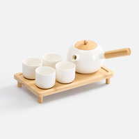 чайник, чашки - фарфор; поднос, крышка и ручка у чайника - бамбук |