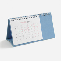 Настольный, перекидной календарь-домик выполнен из материала Latte, голубой JJ.