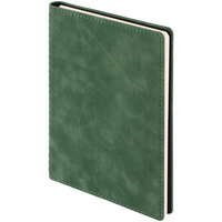 Ежедневник с блоком на пружине в твердой обложке, выполнен из материалов Nubuk Touch, зеленый FF и Soft Touch, черный AA.