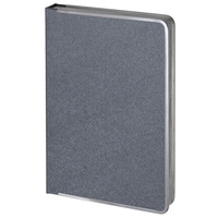 Ежедневник с твердой обложкой и серебристым обрезом, выполнен из материала Saffian, темно-серый, дополнен серым ляссе и металлическими рамками.