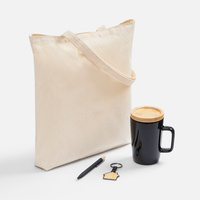 кружка - керамика, крышка - бамбук; сумка - хлопок 100%, плотность 210 г/м²; саржа; брелок - бамбук, металл; ручка - металл, алюминий; кнопка - бамбук |