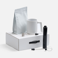 вспениватель: 11х4,7х23,3 см; кружка: диаметр 8 см, ширина с ручкой 11,2 см, высота 10,2 см; пачка кофе: 13х4,5х18,5 см; коробка: 26,3x36,6x10 см |