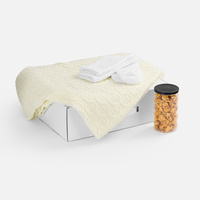 коробка - микрогофрокартон, пластик; плед - акрил 100%; упаковка попкорна - пластик; носки - полиэстер 100% |