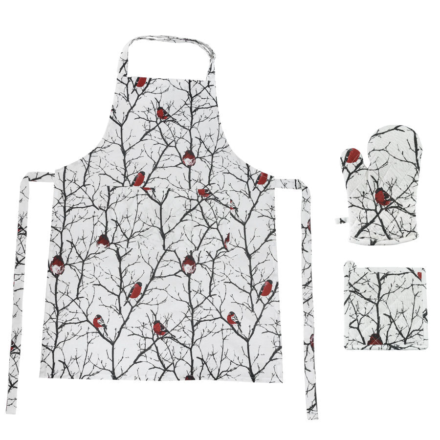 Подарочный набор для кухни "Снегири",хлопок 100%, передник и прихватки