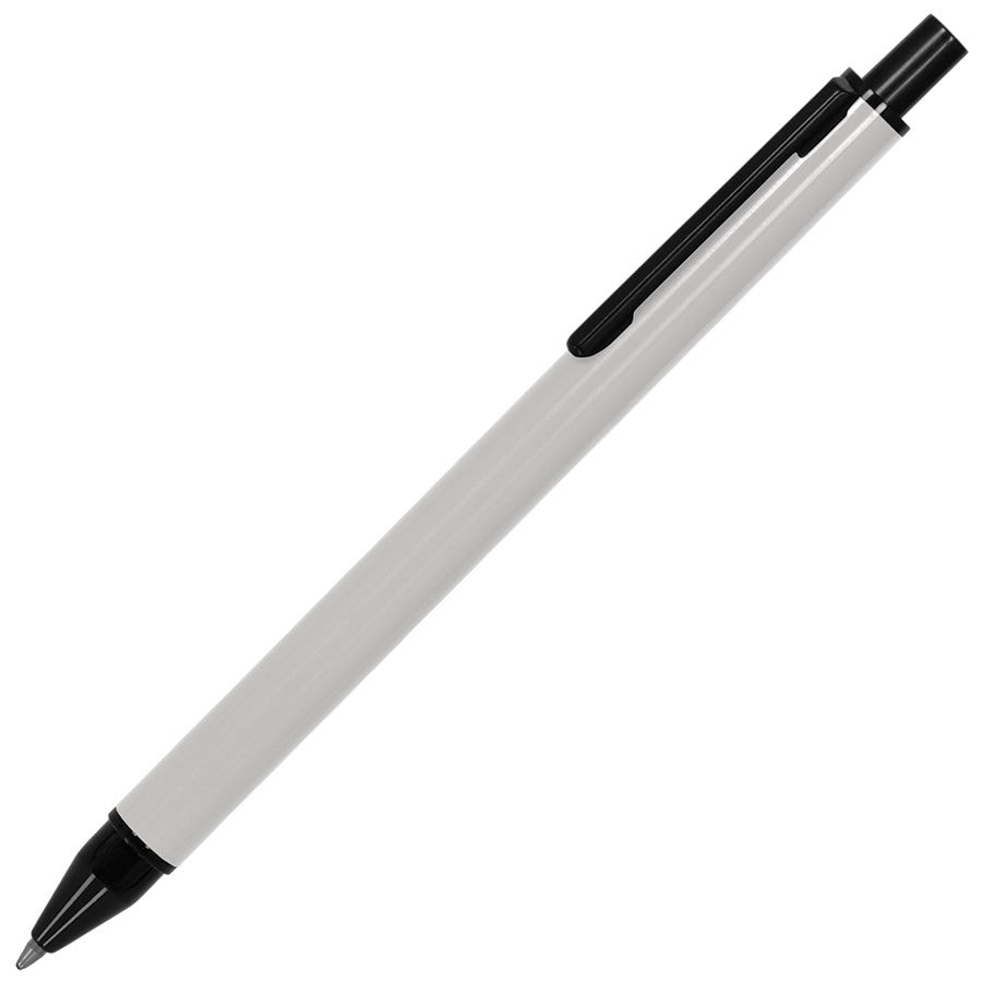 Яркая металлическая ручка простой формы - универсальный носитель рекламного сообщения. Цвет, близкий к Pantone White. Стержень Plastic Parker Type, синий, толщина пишущего узла 1 мм